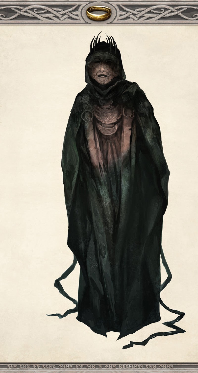 One of the things that frightens me about the Nazgûl is that they are ancient. And I'm keen to get some of that into the visuals. The idea of an ancient, masked, sorcerer king, with some hints of the ancient exotic about him seems a good fit. The long distant past is a foreign county - when we look at artefacts of the bronze age we see a very different aesthetic than later early medieval stylings. I wanted some of that in there for The Witch King.
